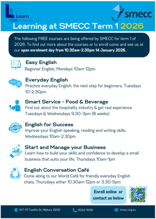 This course will help new arrivals engage in talking and reading to assist with day-to-day communication. The conversation and reading café provides a positive and safe setting for English students to gain confidence practicing their English with a variety of volunteers.